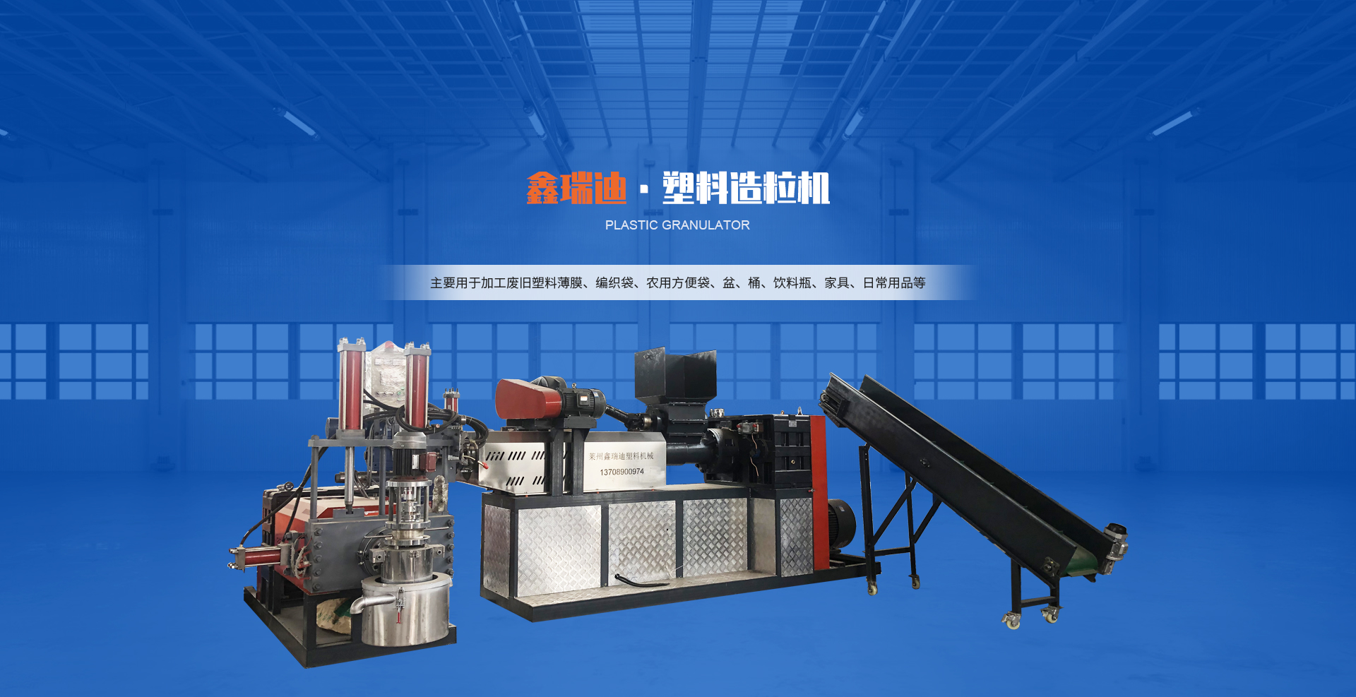 主要用于加工廢舊塑料薄膜(工業(yè)包裝膜、農(nóng)業(yè)地膜、大棚膜、啤酒包、手提袋等)、編織袋、農(nóng)用方便袋、盆、桶、飲料瓶、家具、日常用品等,適用于大部分常見(jiàn)的廢舊塑料